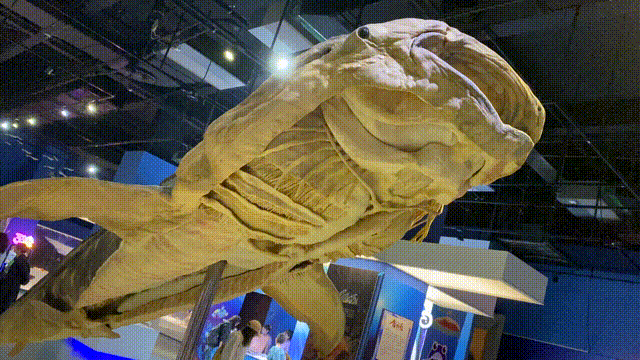 巨大的身躯横陈眼前,仿佛能感受到它在海洋中畅游时带起的阵阵波澜。