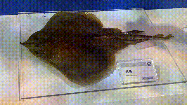 再看看老板鱼标本,它那扁平的身体和独特的游动方式,
